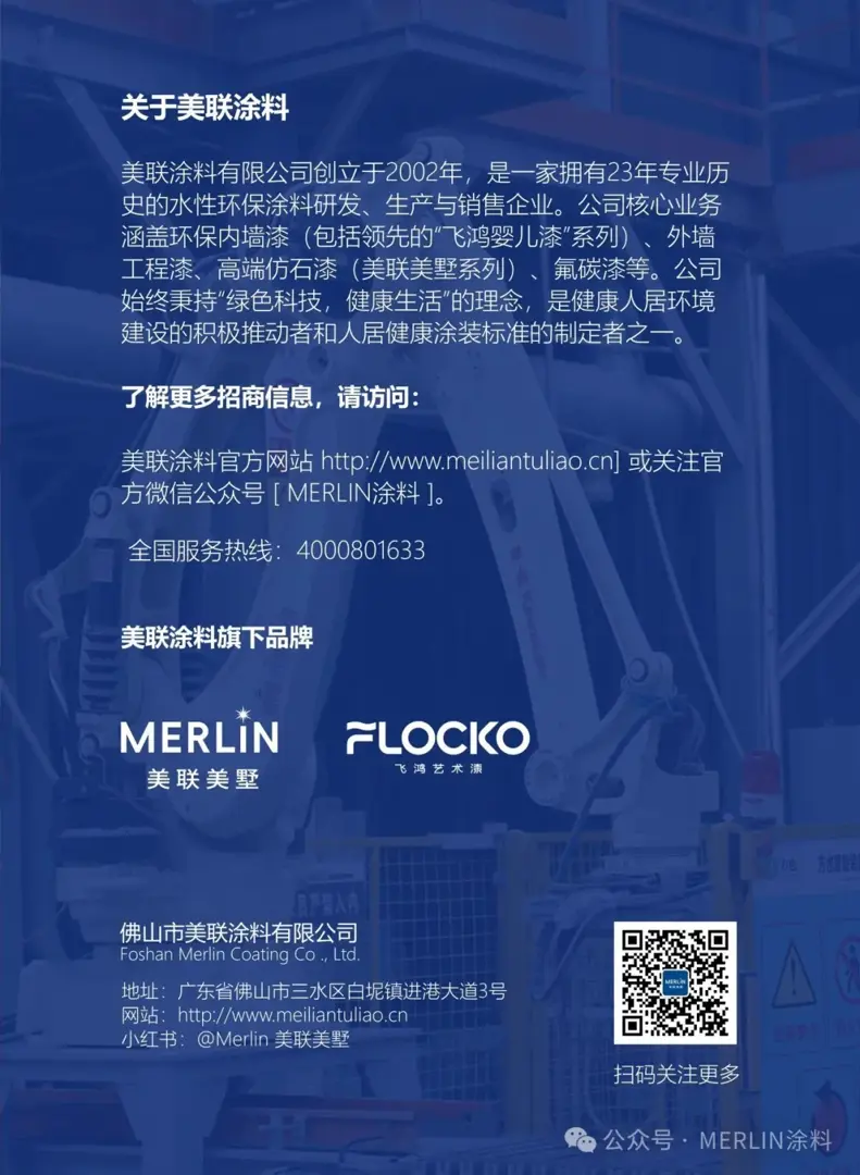 值此荣获“ 广东省好建材 ”殊荣之际,美联涂料正式宣布:美联美墅仿石漆全国招商计划全面启动!公司诚邀具有共同发展愿景、致力于推广高品质绿色建材的全国各地优秀经销商、工程商伙伴加盟合作,共享市场机遇。美联涂料将提供强大的品牌支持、完善的产品体系、专业的技术培训及全面的营销帮扶,携手合作伙伴,共同将兼具极致环保与非凡装饰效果的“美联美墅仿石漆”推广至全国,为更多“好房子”披上安全、美丽、持久的“外衣”。
