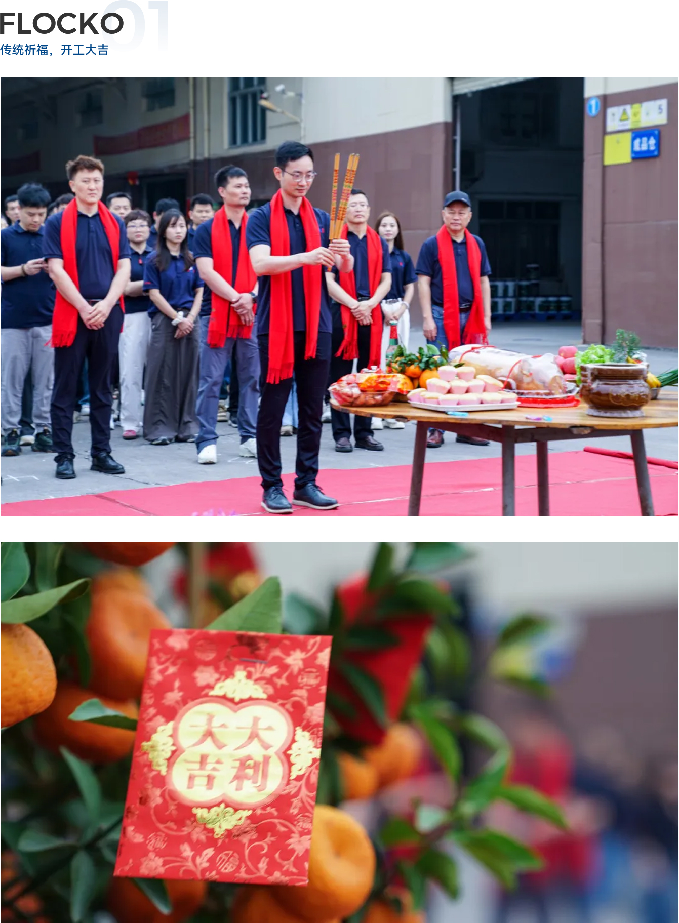 仪式遵循广东传统,现场举行了鸣炮祈福、派发利是、共切烧猪等仪式,以喜庆祥瑞之礼,博得开工好彩头。