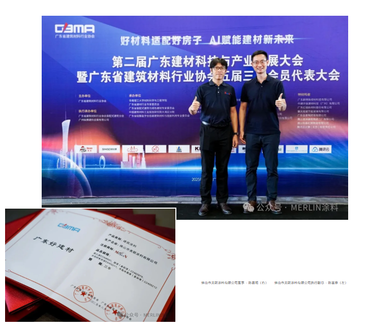 2025年8月8日在广州空港博览中心盛大召开的第二届广东建材科技与产业发展大会暨广东省建筑材料行业协会五届三次会员代表大会上,一场关于建筑未来的讨论热烈进行。来自广东佛山三水区的美联涂料有限公司迎来高光时刻:公司董事长陈嘉明先生凭借其在环保涂料领域的卓越贡献和对“好房子”理念的深刻践行,荣膺大会颁发的重量级奖项——“广东省好建材”奖。这一荣誉不仅是对陈嘉明董事长个人领导力的高度认可,更是对美联涂料23年来深耕水性环保涂料,为万千家庭构筑健康、安全、高品质人居环境的坚定褒奖。